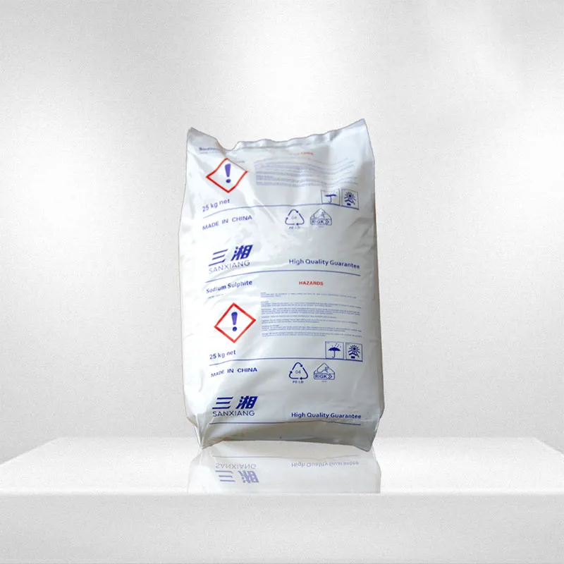 Сульфит натрия упаковывается в двойную тару: внутренняя упаковка — полиэтиленовый мешок пищевого класса, внешняя упаковка — полипропиленовый тканый мешок. Вес мешка: 25 кг, 50 кг, 1000 кг. На упаковке напечатаны слова «Сульфит натрия» и маркировка «Беречь от влаги и тепла», торговая марка — «Сансян».